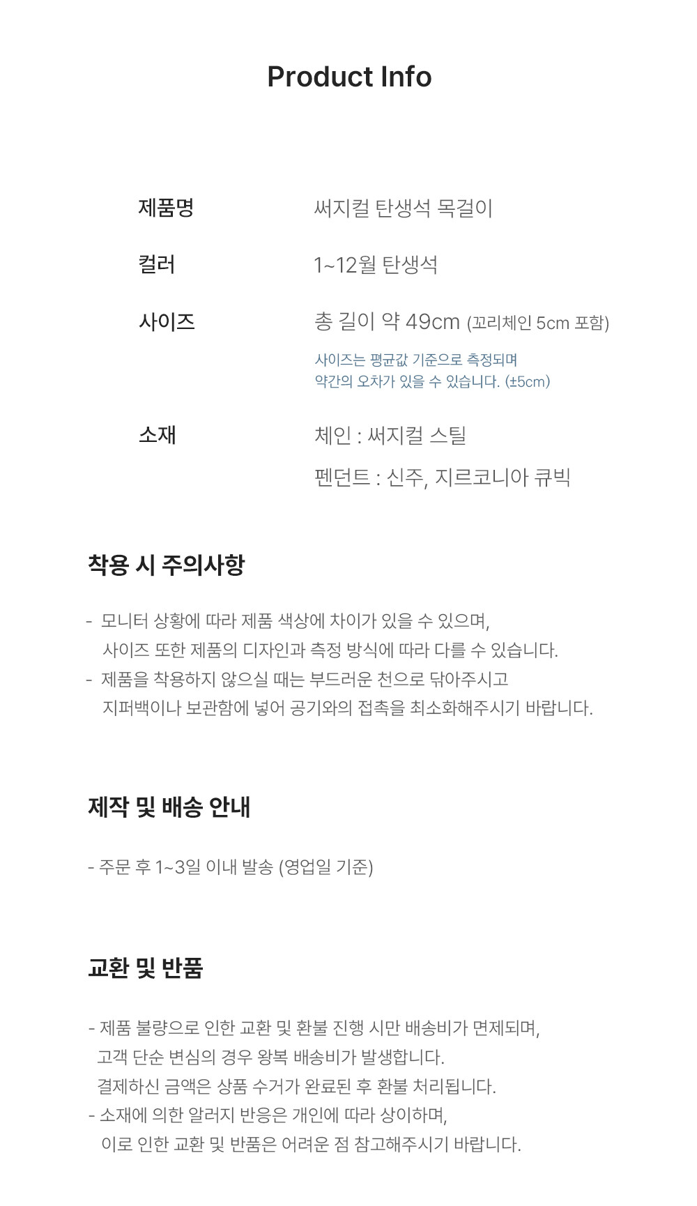 - 상품 하자, 오배송의 경우 수령일로부터 7일 이내 고객센터 접수 후 교환∙반품이 가능합니다. (교환/반품비 무료)